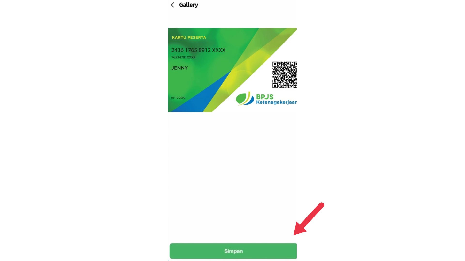 1. Kartu digital milikmu otomatis muncul dalam ukuran yang lebih besar di aplikasi. Di bagian bawah halaman aplikasi, klik pilihan “Simpan”.