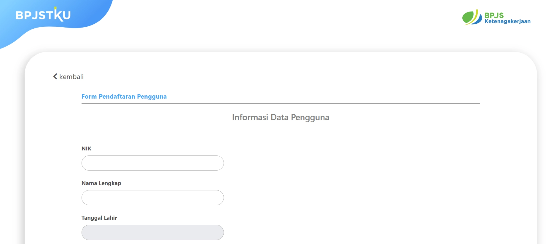 1. Selanjutnya, kamu akan dibawa ke halaman pendaftaran. Isi formulir sesuai instruksi. Cantumkan nama lengkap, NIK, nomor telepon, dan buat password baru.